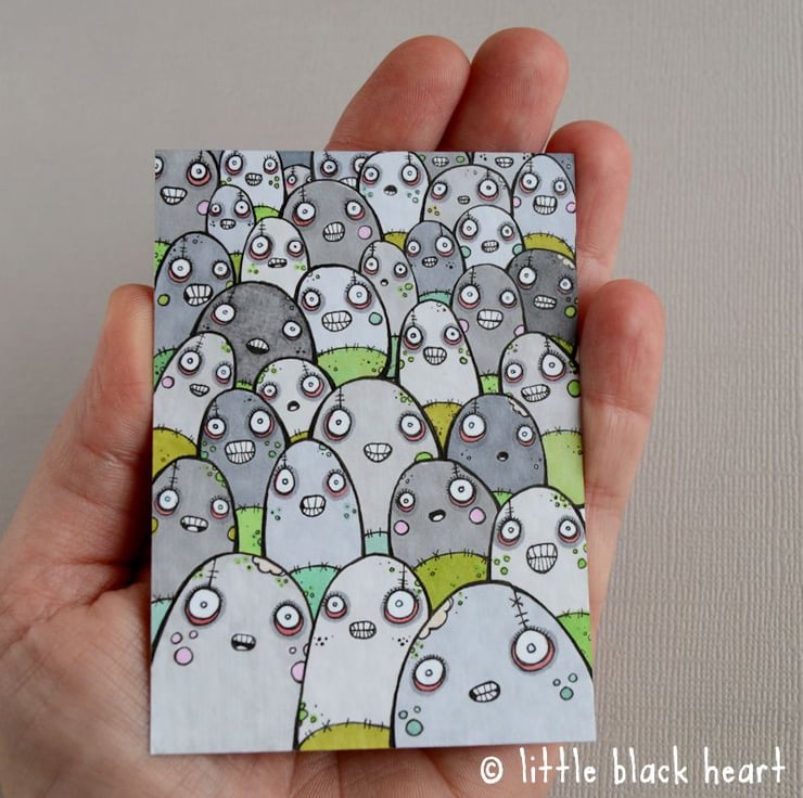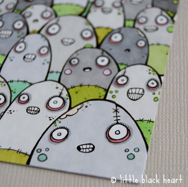 original artwork, drawn in fine detail and coloured with art pens, on textured white 300gsm cardstock.