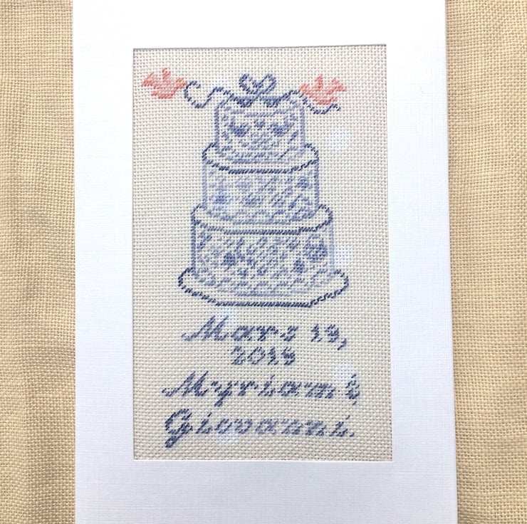 If you look carefully you can see love birds, hearts, wedding bells, bows and symbols from French embroidery.