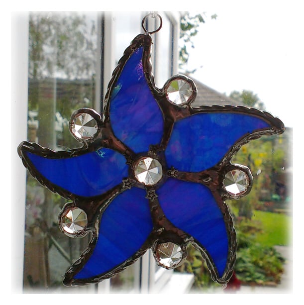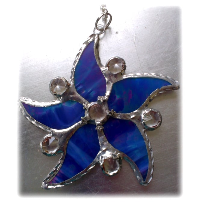 SOLD Starfish Suncatcher Stained Glass Handmade Blue