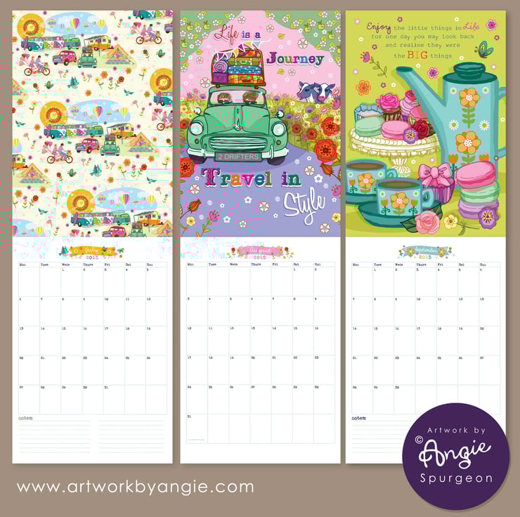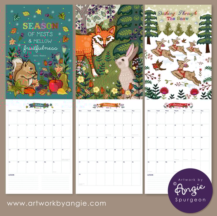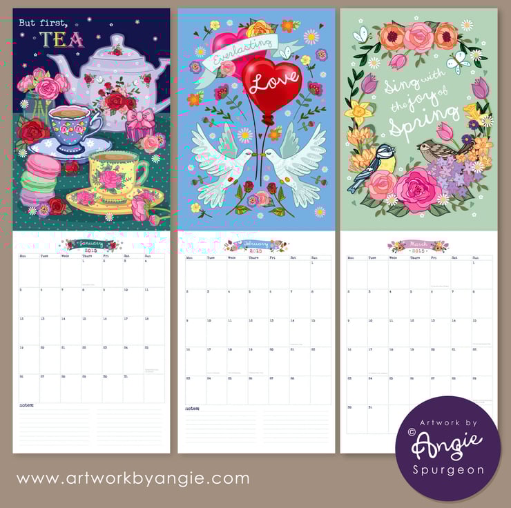 Last year I created a similar calendar with a mixture of my illustrations and patterns throughout, it proved popular, so I've updated the calendar for 2015.