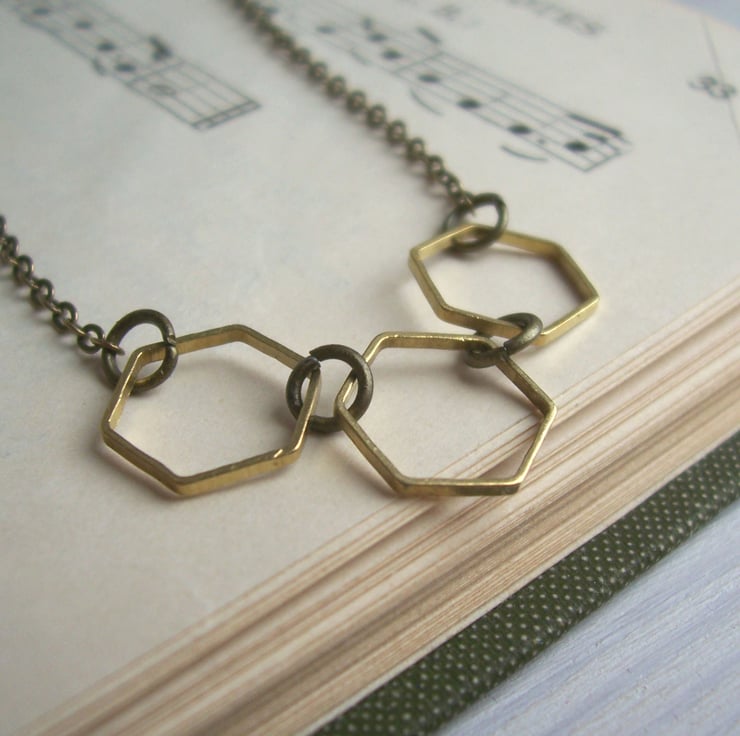 These delicate hexagons hang on fine chain. A beautifully simple and modern necklace.