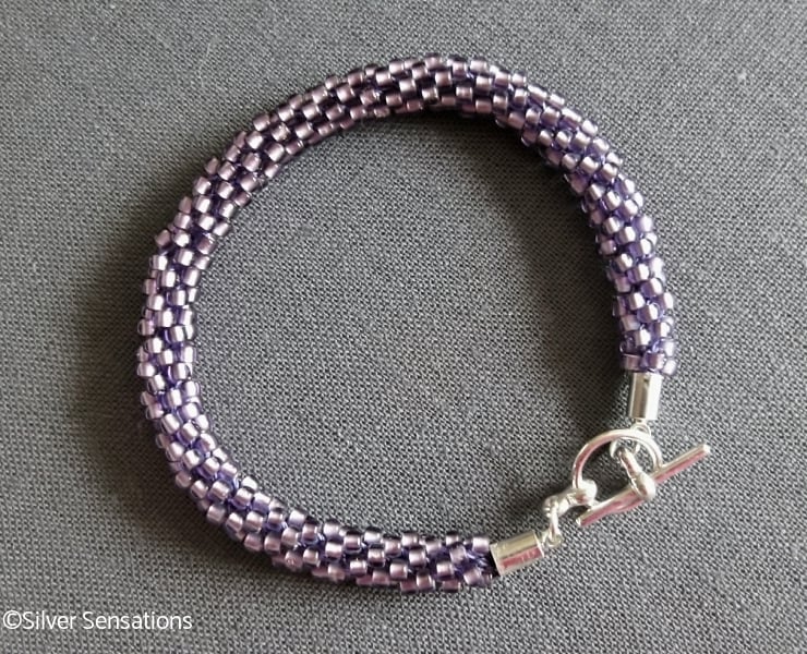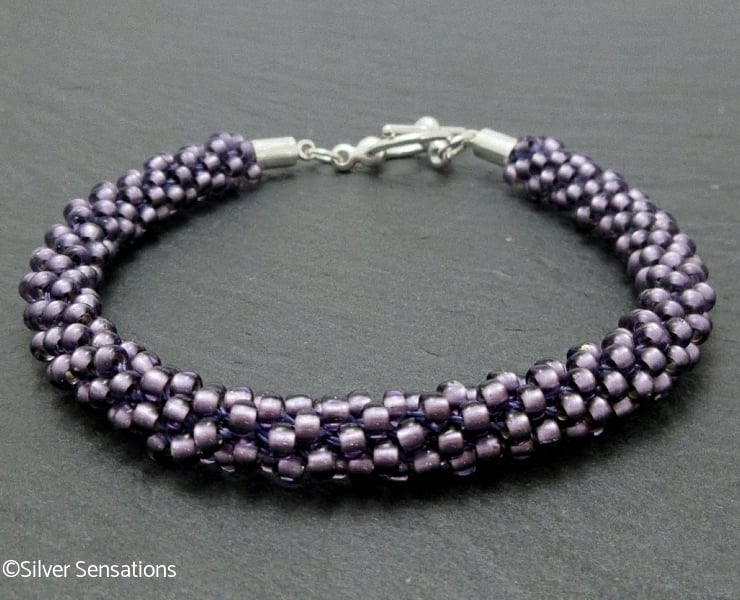 These beads are a medium amethyst shade which have a silver coloured lining and a frosted/satin finish. This satin finish adds an air of understated elegance to this bracelet.