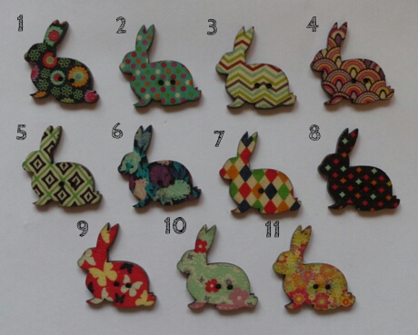 They are made from Bunny wooden buttons with a brooch back glued securely to the back