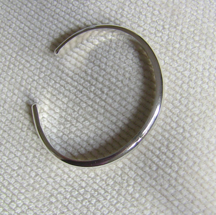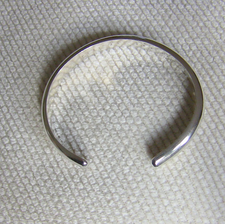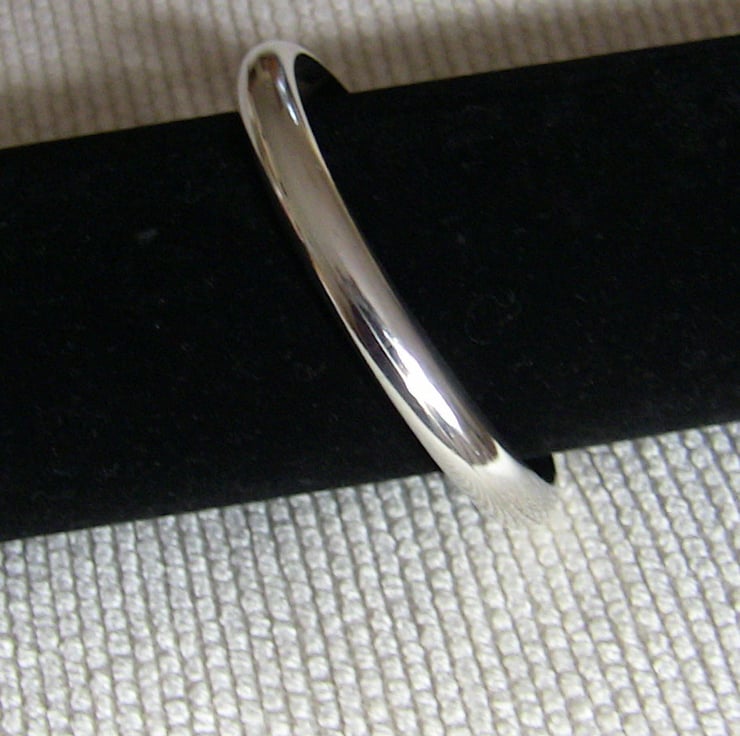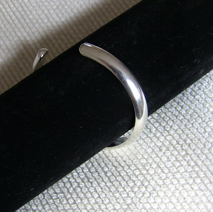 This heavy sterling silver cuff bangle is a solid item that would be ideal as a special occasion gift for a man, although l can scale it down a bit to fit a lady too! It is made from 8x4mm D-shaped wire, weighs about 45g and the design is classic minimalist. I can supply it in a polished or a matt finish. I only make these to order and it will be hallmarked by the London Assay Office so you will need to allow at least two weeks. If you would like to order one, then please contact me with wrist measurements and details of your requirements.