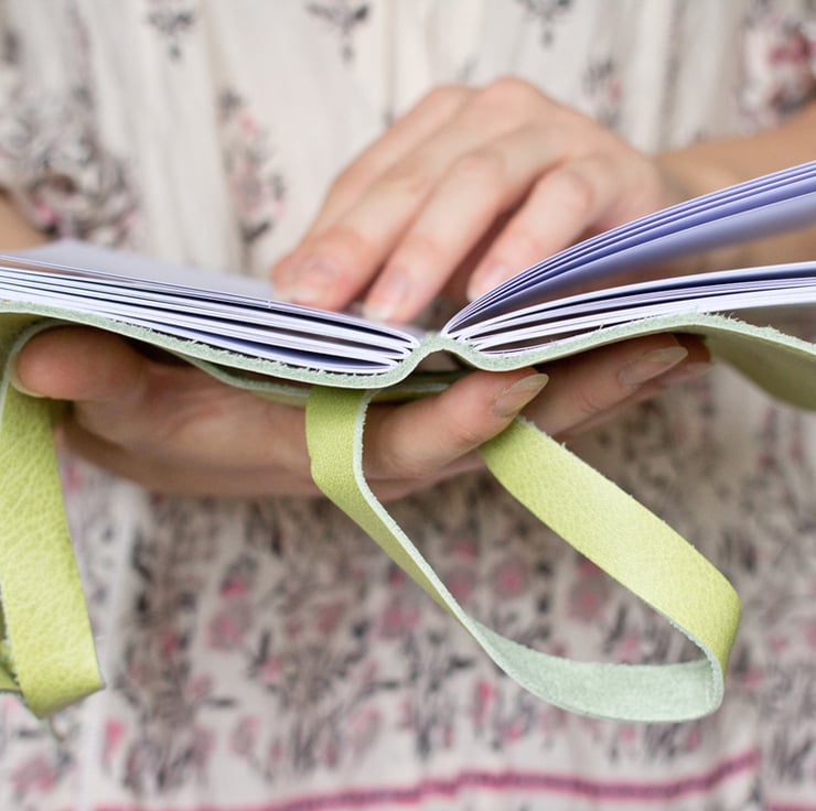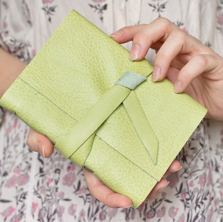 Leather Book - Citrus Green- Handbound Leather Wrap Blank Journal - 6 x 4