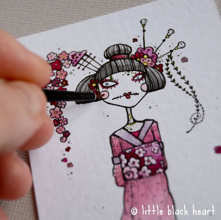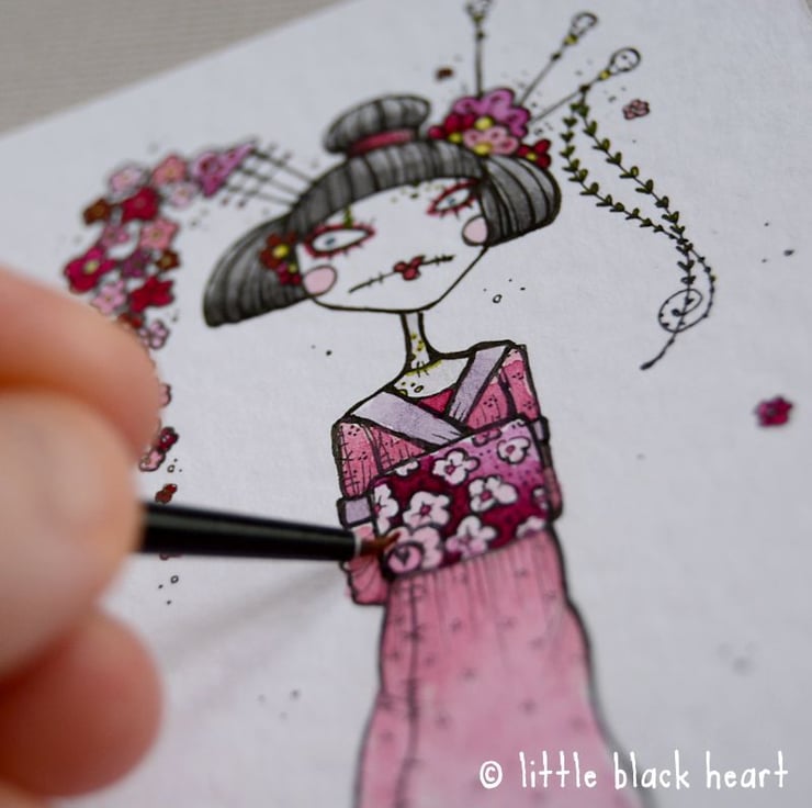 a little zombie geisha girl, adorned with pretty flowers!