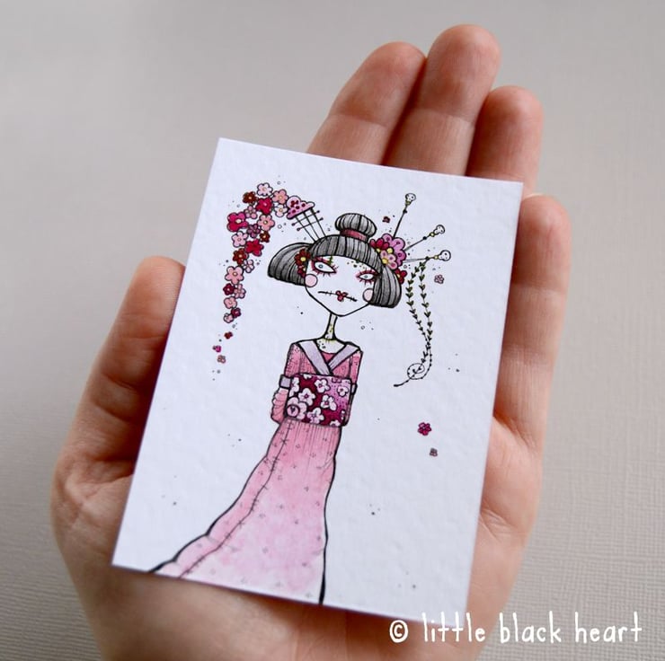 original artwork in artists pens and watercolour paints, on textured white 300gsm cardstock. drawn with a tiny 0.05 nibbed pen, and carefully painted with just the very tip of a tiny paintbrush!