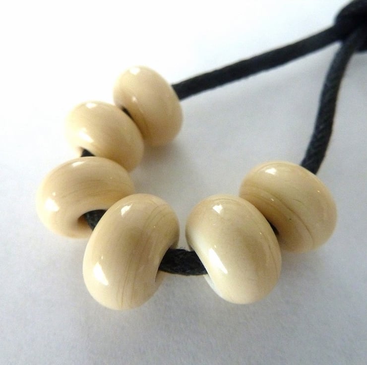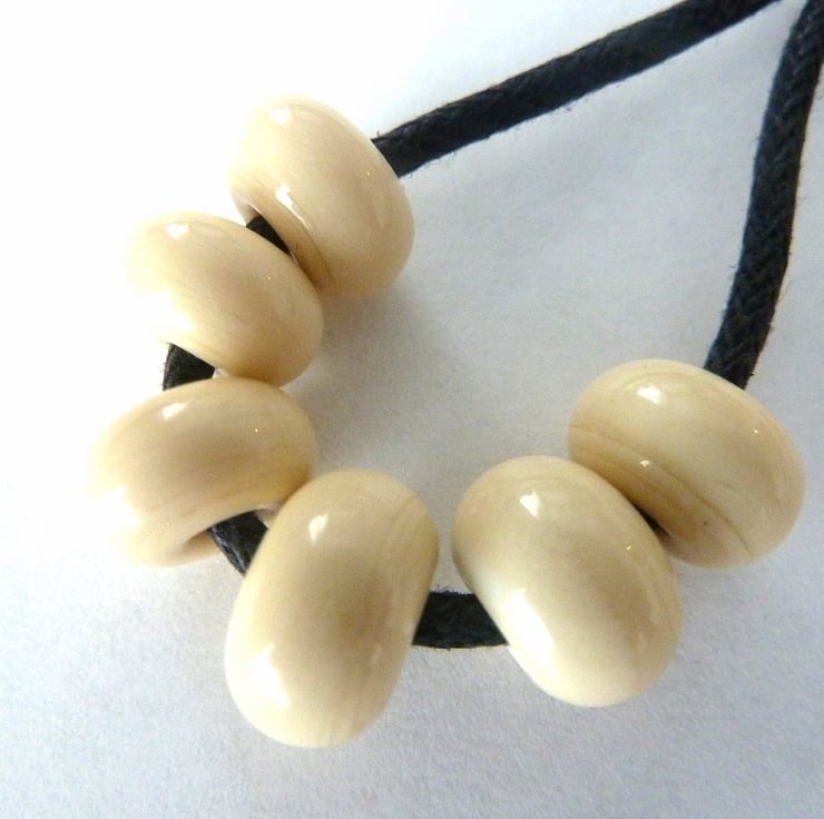 A set of 6 handmade lampwork glass beads which have been made with ivory glass.