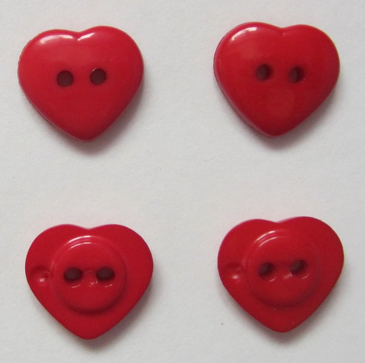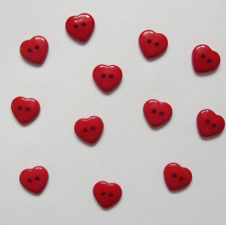 12 red heart buttons, each measuring 1.5 cm across.