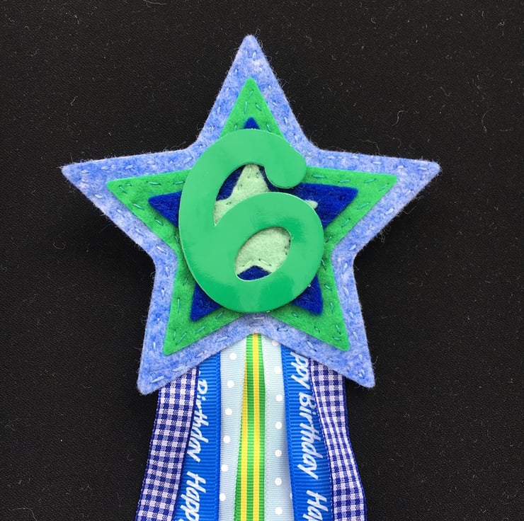 Birthday badges made in felt/fabric, many designs in any colours