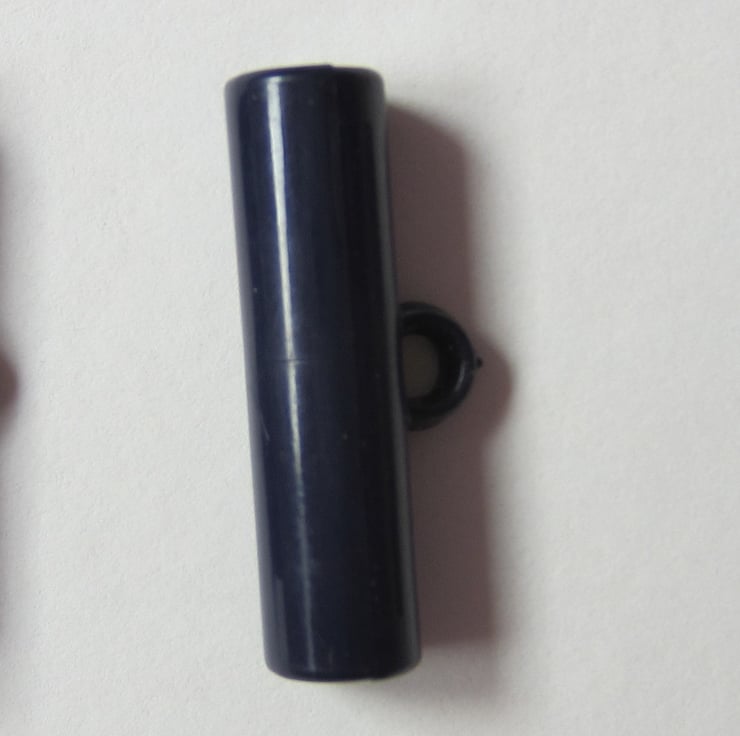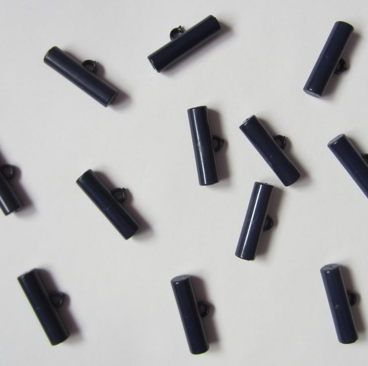 12 navy blue toggles each measuring 3 cm long and 8 mm in diameter.
