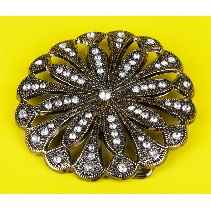 Concave textured flower design with clear glass stones.