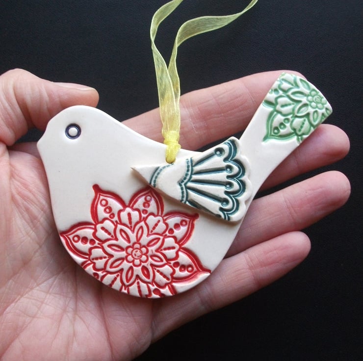 Bejewelled Bird ceramic Christmas decoration