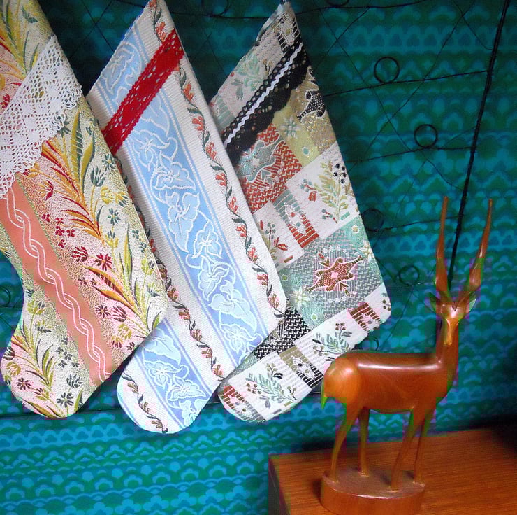 Retro Christmas Stocking made from 50s 60s vintage fabric