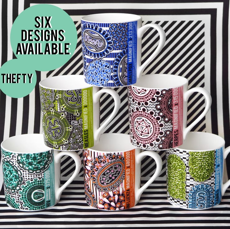 Hello! I'm Helena, the designer behind Thefty. I am a designer/illustrator, but I studied biology at university and have always been drawn to biological and scientific imagery. I designed this range pre-pandemic, when viruses were still niche content (those were the days, hey?). I love being able to give a creative twist to scientific information, and hopefully create objects that are useful, beautiful, and a little bit thought-provoking too.