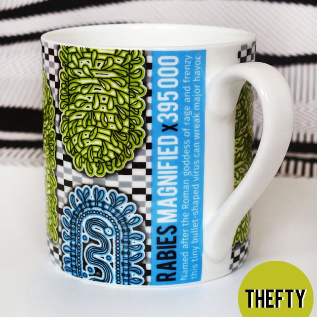 The Retroviral collection mugs depict the microscopic structure of viruses. If you like a dose of designer science quirkiness with your morning coffee, these are the mugs for you.