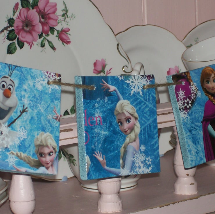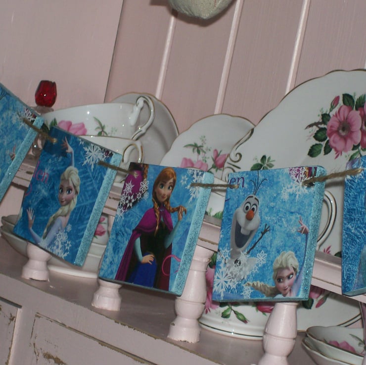 Painted in Laura Ashley Peacock, Decorated in Frozen Designs, then edged in Blue Sparkles...