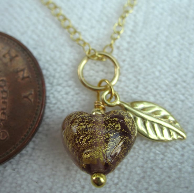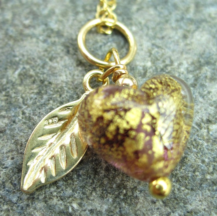 Even at my age, I am a hopeless romantic, full of Hearts & flowers - like this tiny sweet heart and gold plated silver necklace. On a gold plated sterling silver light chain, it is light & wearable. The little heart is Venetian Murano glass - if you want another colour - just mail me & I will check the glass drawer.