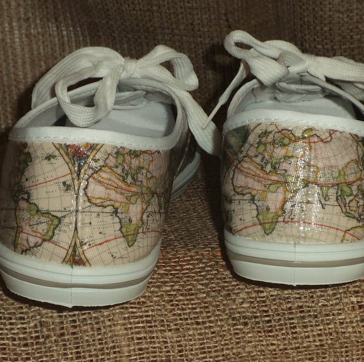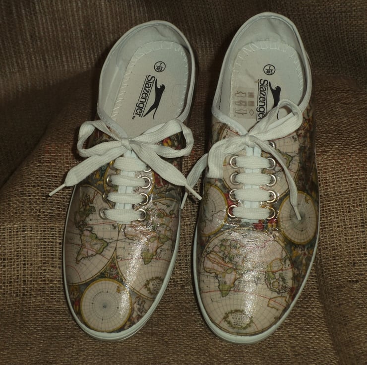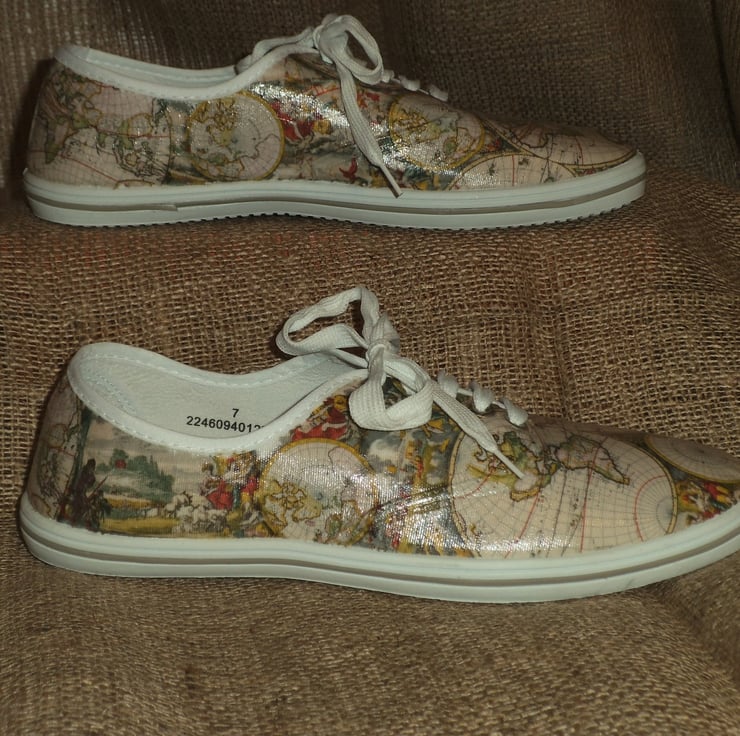 Decorated Canvas Shoes Old World Map SIZE 7 (40.5) Individual Unique Decoupage