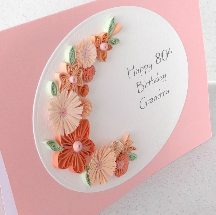 A beautiful quilled card with quilling flowers in pale pink and peach shades for a very special person.