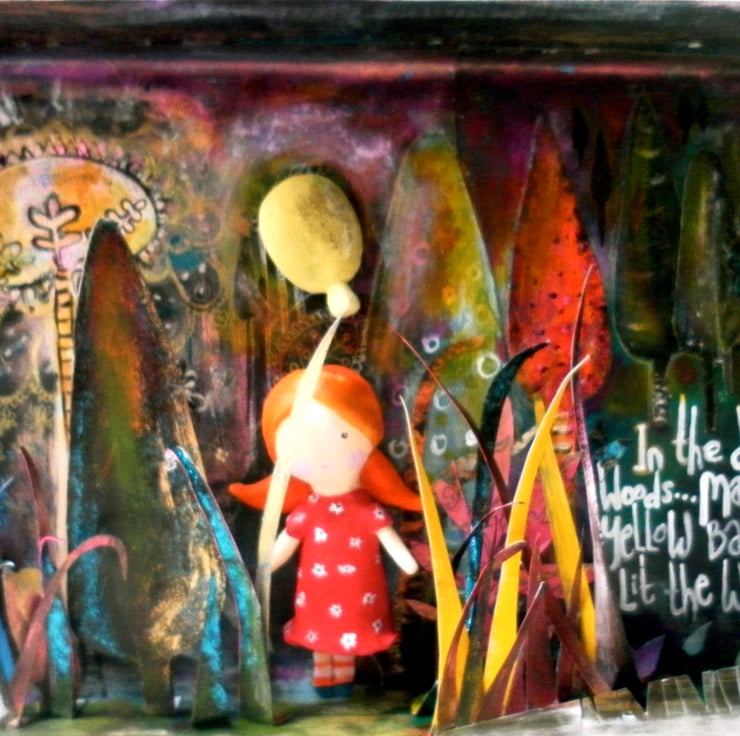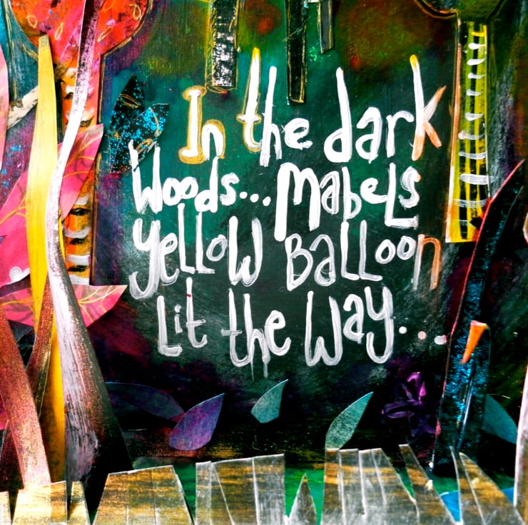 Mabel was lost in the dark woods...as the night became darker...her yellow balloon lit the way...
