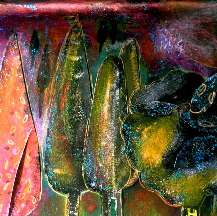 This can be stood on a bookshelf or wall mounted. The colours are rich and beautiful.