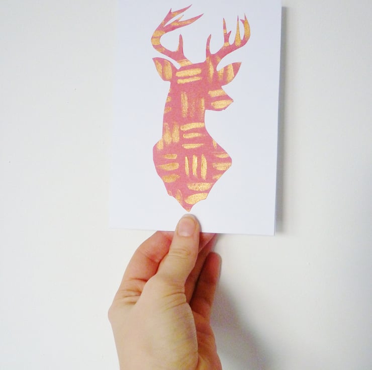 This cute card is approx. A6 in size with a reindeer collaged to the front with hand painted, recycled paper. It's the perfect Christmas card for that special person!