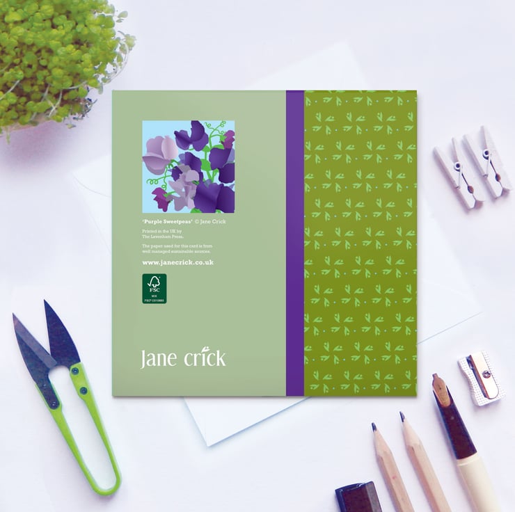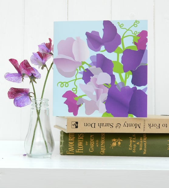 Pretty purple sweet pea flower card - perfect for birthday, for gardeners or for anyone who loves sweet peas - and let's face it, who doesn't!