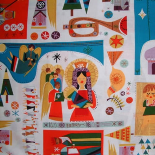 This contempory print is so gorgeous, so bright and colourful, and the images of the nativity story go perfectly with the text from traditional English carols.