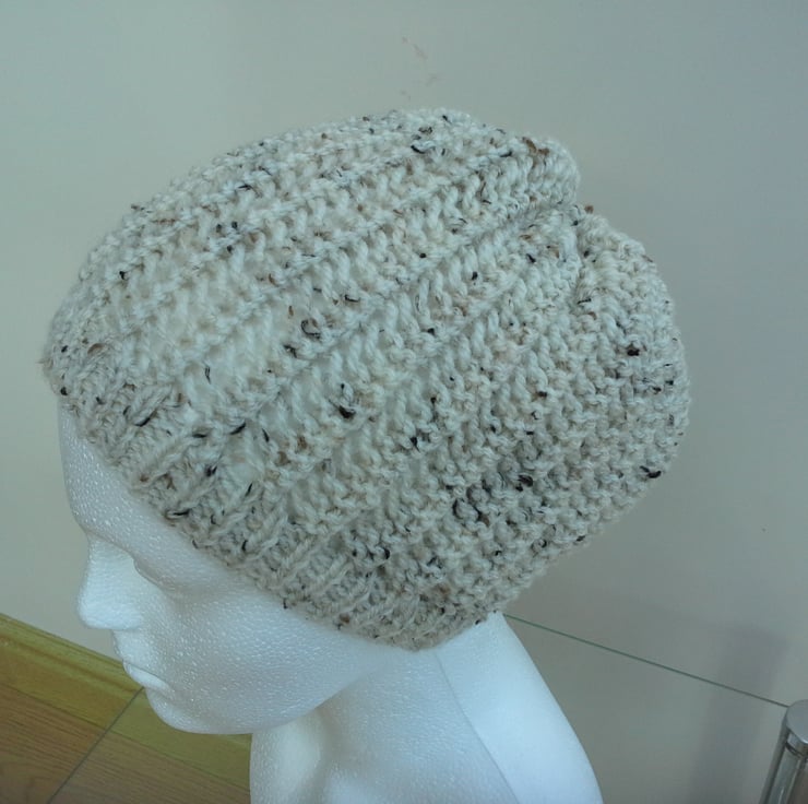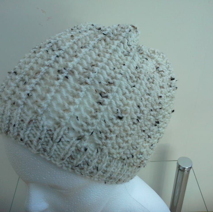 Hand knitted in aran weight yarn. 20% wool 80% acrylic