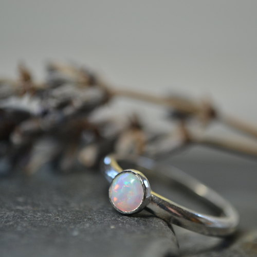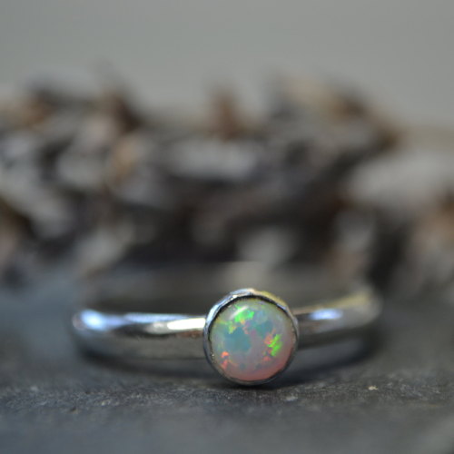 This gorgeous opal is 5mm and is synthetic. However, I am happy to use a natural opal if preferred - please contact me for pricing.