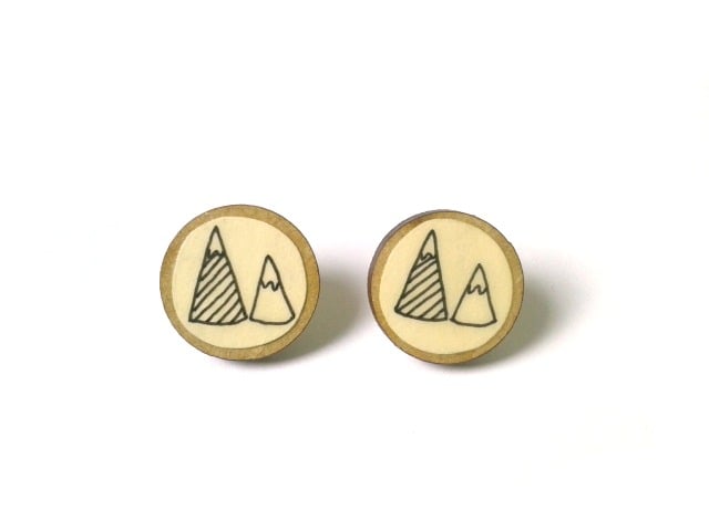 Featuring a hand illustrated mountain scene drawn on cream paper and mounted on to circular wood. The pieces of wood are left natural. Made from birch ply. Sealed with layers of varnish and a protective enamel finish.