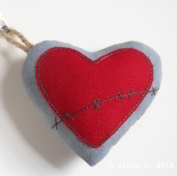 the hearts have been made entirely on a domestic sewing machine, everything is cut, stitched & drawn freehand by me.