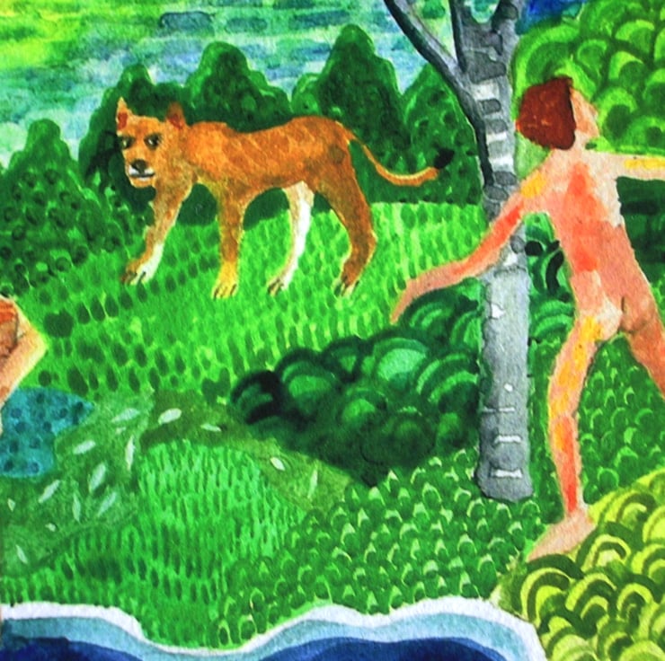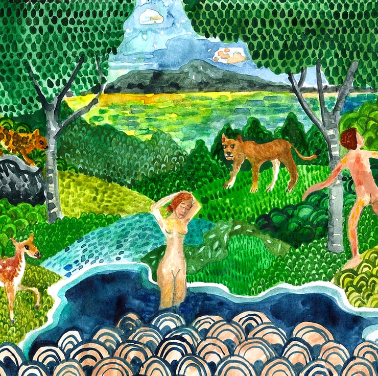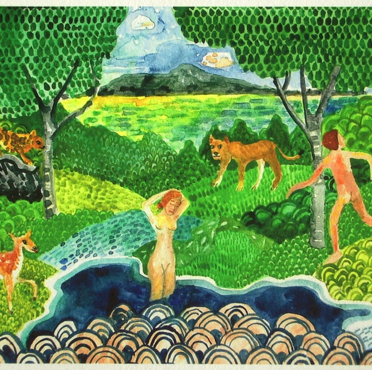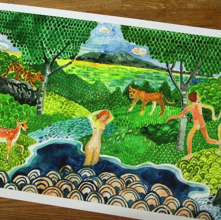 This is a print of a painting which sold in an exhibition in London called 'A Letter in Mind' in October 2014. It is about the power of the mind to create a whole wonderful universe of it's own making - our own personal utopia.