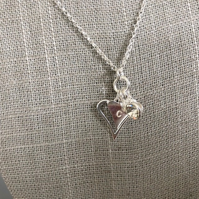 I can hand-stamp a letter onto the smaller heart charm, if you would like me to personalise the necklace, please send me a message with the letter you would like.