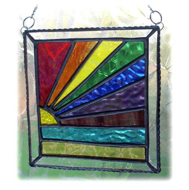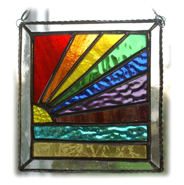 This is a stained glass suncatcher made using the Tiffany copper foil technique.