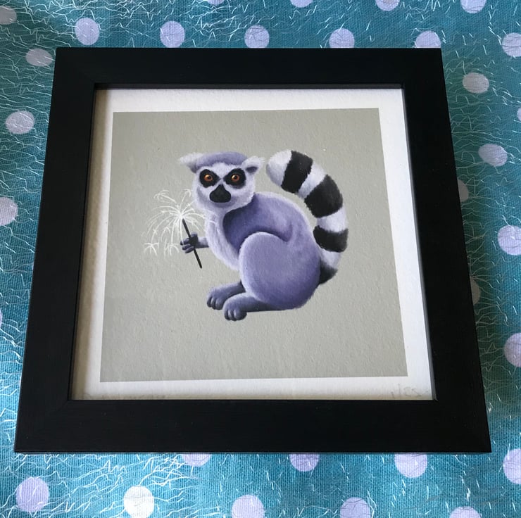 Be one of a select few to own one of these cute, quirky Ring Tailed Lemur with Sparkler limited edition art prints. Printed on 6" by 6" German etching paper with a 1” white border. Printed to order so can take up to 14 days to arrive. Print is numbered and signed by DuffleCat Prints artist Damian Case. Print is unframed.