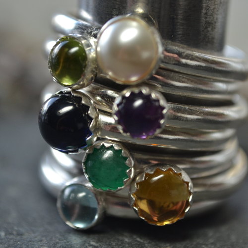 I originally designed these as stacking birthstone rings.The stone of your own month, and those you love all stacked together. But of course you could just choose your favourite colours! Simply add your chosen rings to the basket, adding spacers (simple sterling rings) if required. I'm adding new stone sizes, shapes, and settings all the time, but please contact me if there is something in particular you would like.