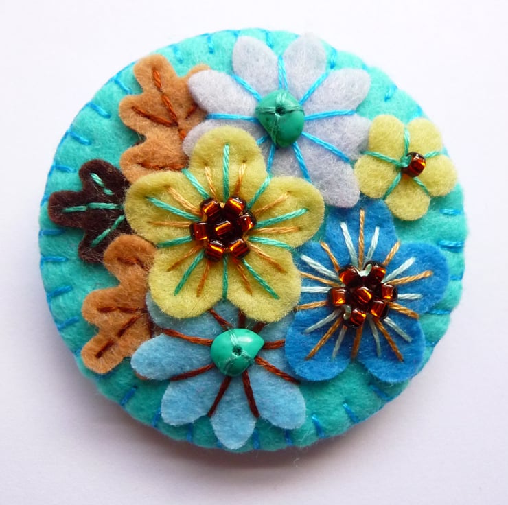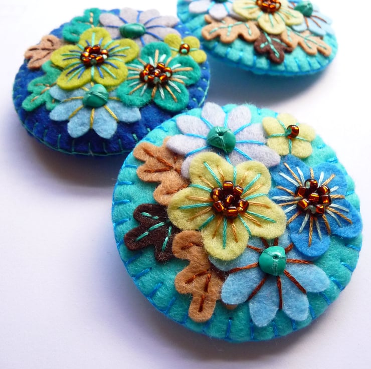 Japanese Art Inspired Handmade Mini Felt Brooch - Turquoise - Made to order