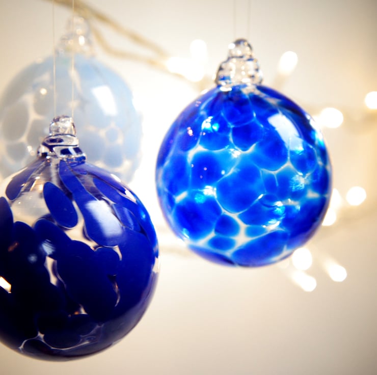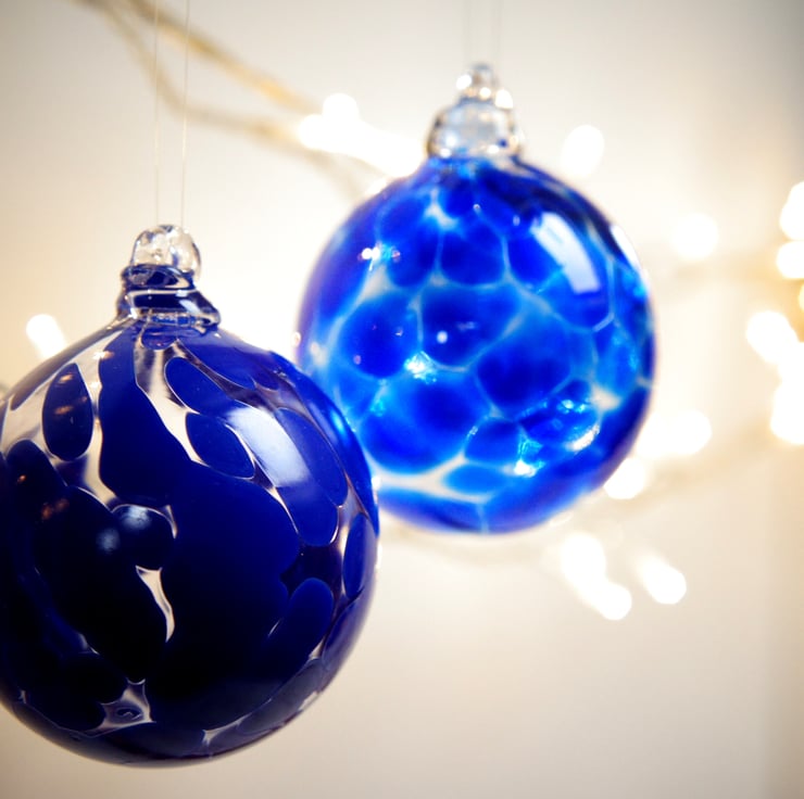 An opaque Lapis blue coloured glass bauble.