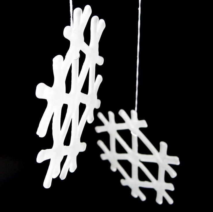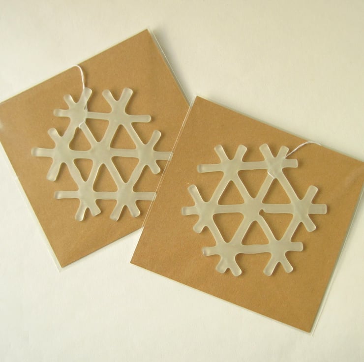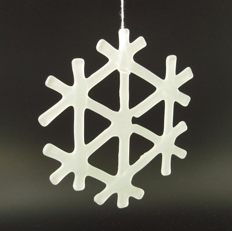 A fused glass snowflake decoration hanging from a simple white thread, perfect for your tree at Christmas or your window any time of the year. These snowflakes are made from lots of small strips of glass fused together in my kiln. I use upcycled glass, reclaimed from old picture frames. Once the snowflakes are out of the kiln I gently sandblast them to give them that lovely frosted snowy finish.