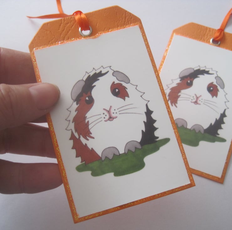 A pair of gift tags featuring cartoon style guinea pigs, using images taken from some of my original artwork.