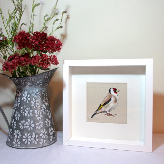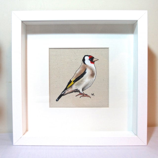 This beautiful little bird is painted using acrylic paint, within an outline which is stitched onto canvas freehand using my sewing machine. This creates a stunning effect. This item is made to order.