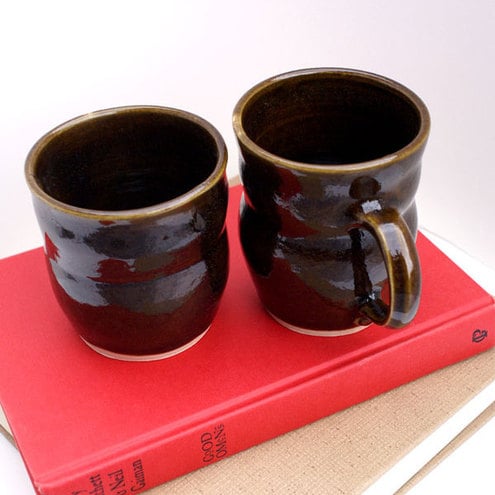 Two black ceramic stoneware coffee mugs. Handmade Stoneware Pottery by littlewrenpottery on Folksy.