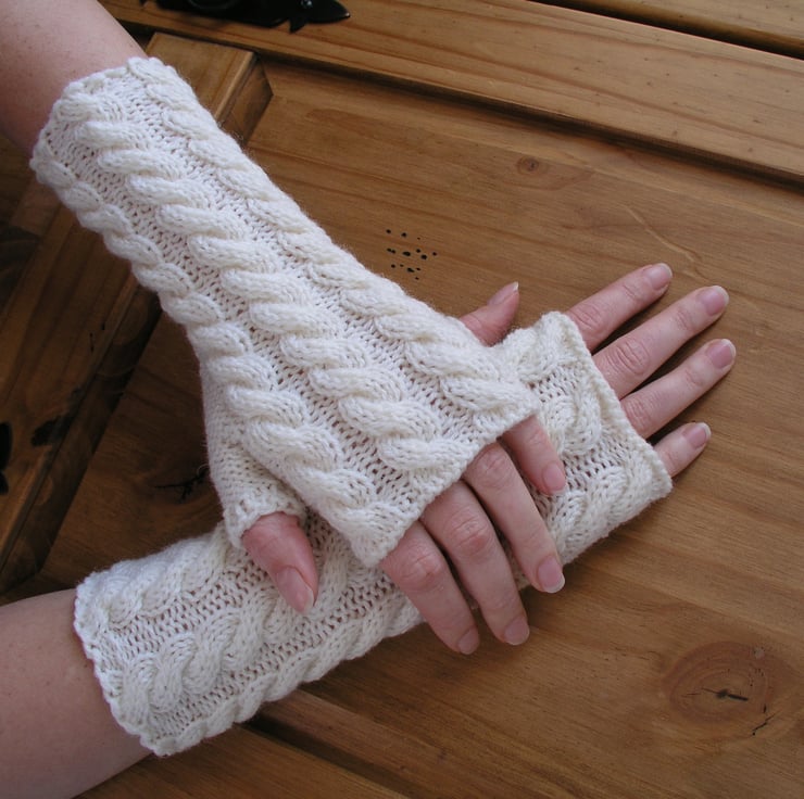 Wrist warmers hand knitted in a cable pattern