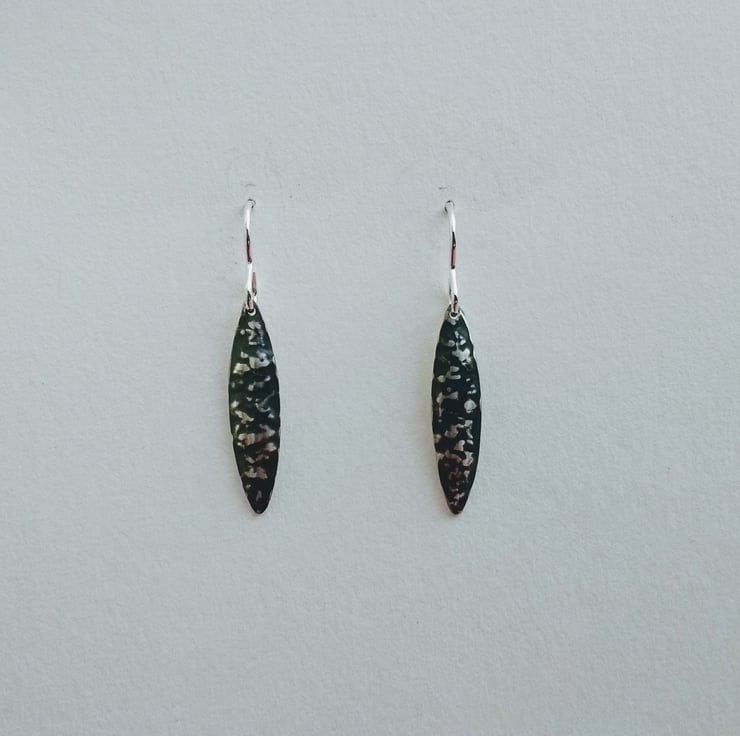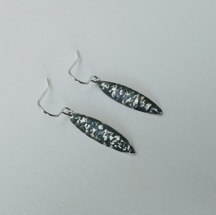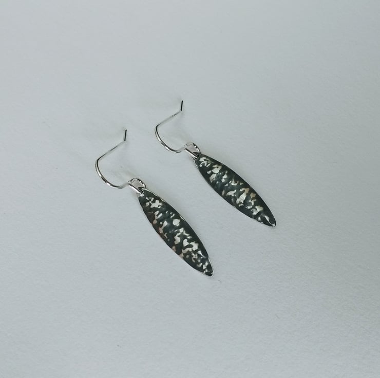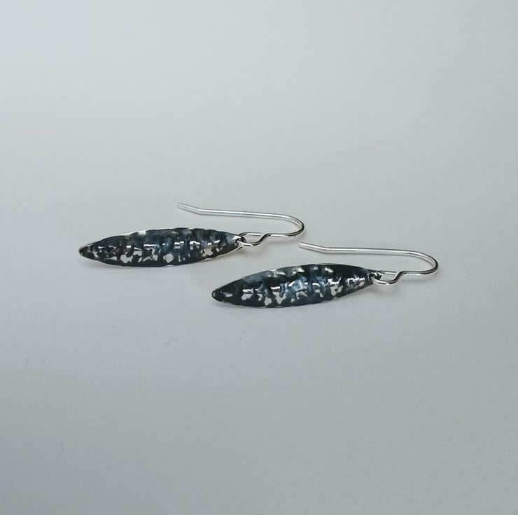Handmade in my North Yorkshire studio, these Sterling Silver Earrings which are part Oxidised to create the two tone black and silver colour contrast are part of my Blackwave Range. They are a short oval drop which has been gently domed and textured using the technique of Repousse. The drops are each hung from an elegant Sterling Silver earwire. The technique I use is produced by hand which means that each piece is unique.