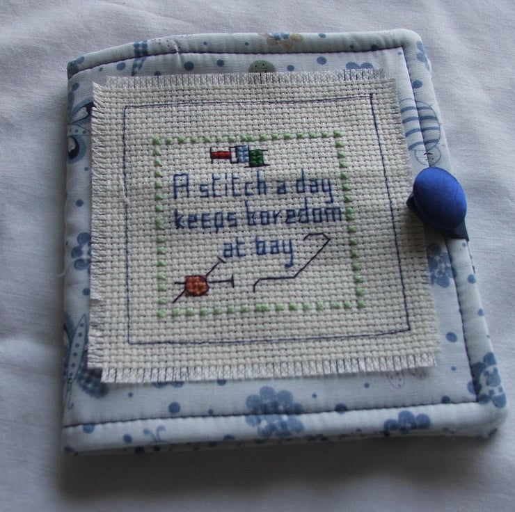 Lovely sewing needle case with great saying on the front, make a lovely Christmas present for the crafter in your life, made in cotton fabric with embroidered front, inside wool wading to keep those needles safe..