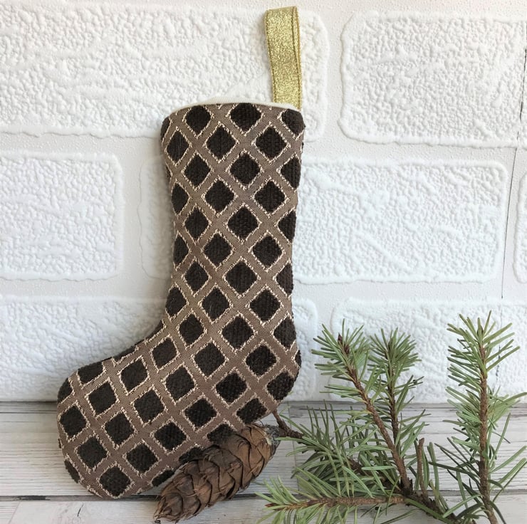 Cute little Christmas stocking which can also be used as a Christmas tree decoration or hung on a Christmas garland.