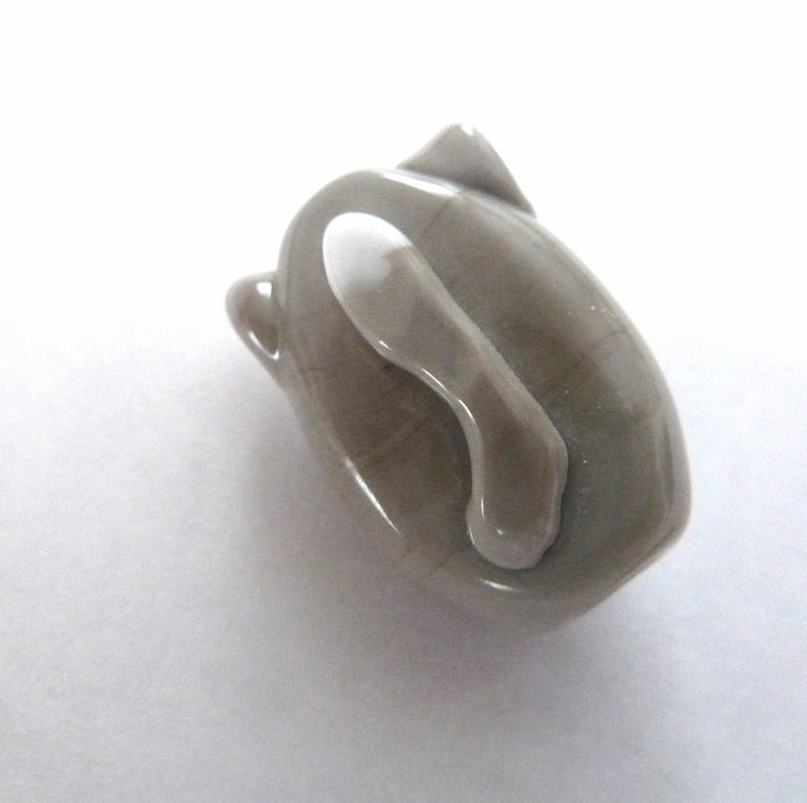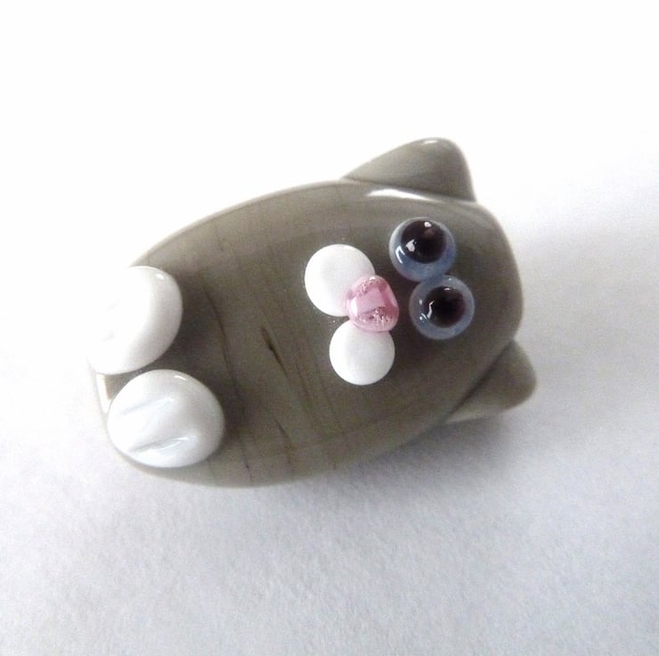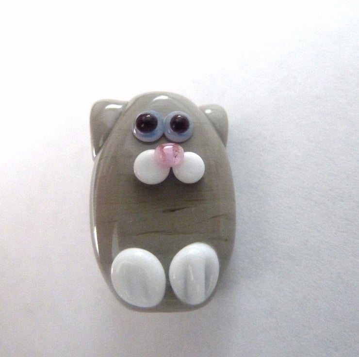 A handmade lampwork glass bead I have made into a cat using grey glass.