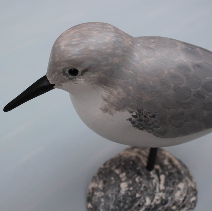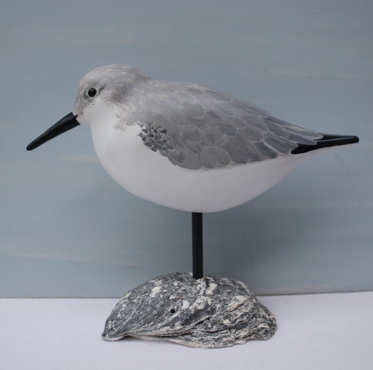 Another wader, the sanderling is larger than the dunlin and has lovely grey tones to the plumage. I like the stocky rounded shape and this one looks really good on this lovely oyster shell.